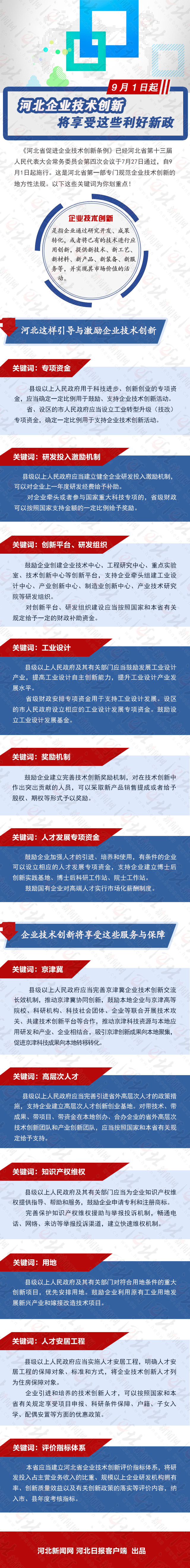 河北省促進(jìn)企業(yè)技術(shù)創(chuàng)新條例》已經(jīng)河北省第十三屆人民代表大會常務(wù)委員會第四次會議于7月27日通過,自2018年9月1日起施行。這是河北省部專門規(guī)范企業(yè)技術(shù)創(chuàng)新的地方性法規(guī)。以下這些關(guān)鍵詞為你劃重點!