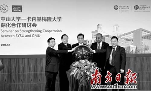 打造以大學(xué)城為核心的“創(chuàng)新發(fā)展智核”,為番禺創(chuàng)新驅(qū)動的重要方向。圖為中山大學(xué)—卡內(nèi)基梅隆大學(xué)深化合作研討會在中山大學(xué)大學(xué)城校區(qū)舉行。王輝攝