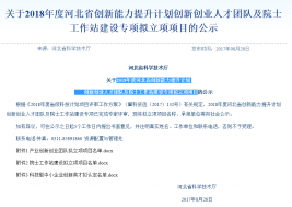 近日,河北省科學技術廳根據《2018年度省級科技計劃項目評審工作方案》(冀科資函〔2017〕132號)有關規定,2018年度河北省創新能力提升計劃創新創業人才團隊及院士工作站建設專項已完成
